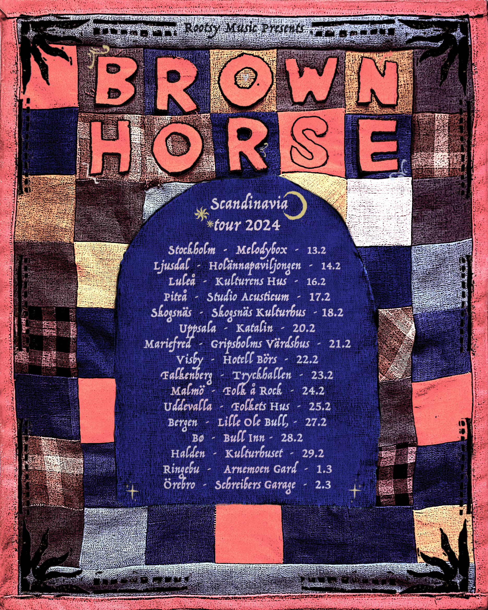 I ended up doing a quite shoddy job of quilting the background for our 2024 winter/spring tour poster, adding some lino printed shapes in post, after Nyle suggested I try sewing something. This little quilt now lives in our merch box on tour and we use it to pin our merch prices to - so it’s had a lot of use.